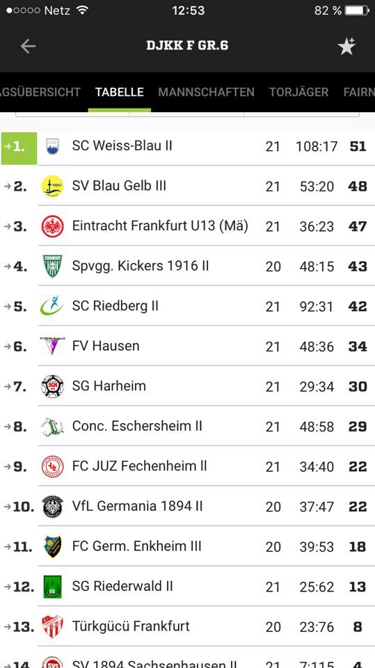 Parallel dazu spielte unser Flaggschiff, die D1, bei den FFV Sportfreunde 04 und konnte die Tabellenführung behaupten! Den Jungs von Farid Ashrafian und Serdar Sen gelang ein souveräner 2:0 Auswärtssieg. (2. Bild/Tabelle)