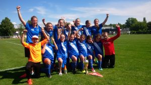 Nach dem Kreispokal und dem vorzeitigen Gewinn der Gruppenliga haben sich unsere U12-Fußballerinnen auch den Regionalpokal geholt. Auf dem Finalturnier mit Gastgeber MSG Bad Vilbel, SG Westerfeld, SG Wiking 03 Offenbach und dem SC Riedberg gab es zwei Siege und ein Unentschieden . Es war den Spielerinnen um ihre Trainerinnen Tami Probst und Ronja Krohn anzumerken, dass inklusive dem Finalturnier zehn Spiele in vier Wochen Kraft gekostet haben. Dennoch behielten die Mädchen in allen Spielen eine weiße Weste. Das Unentschieden im Finalturnier gegen Westerfeld war der einzige Punktverlust bei gleichzeitig neun Siegen seit der Osterpause.